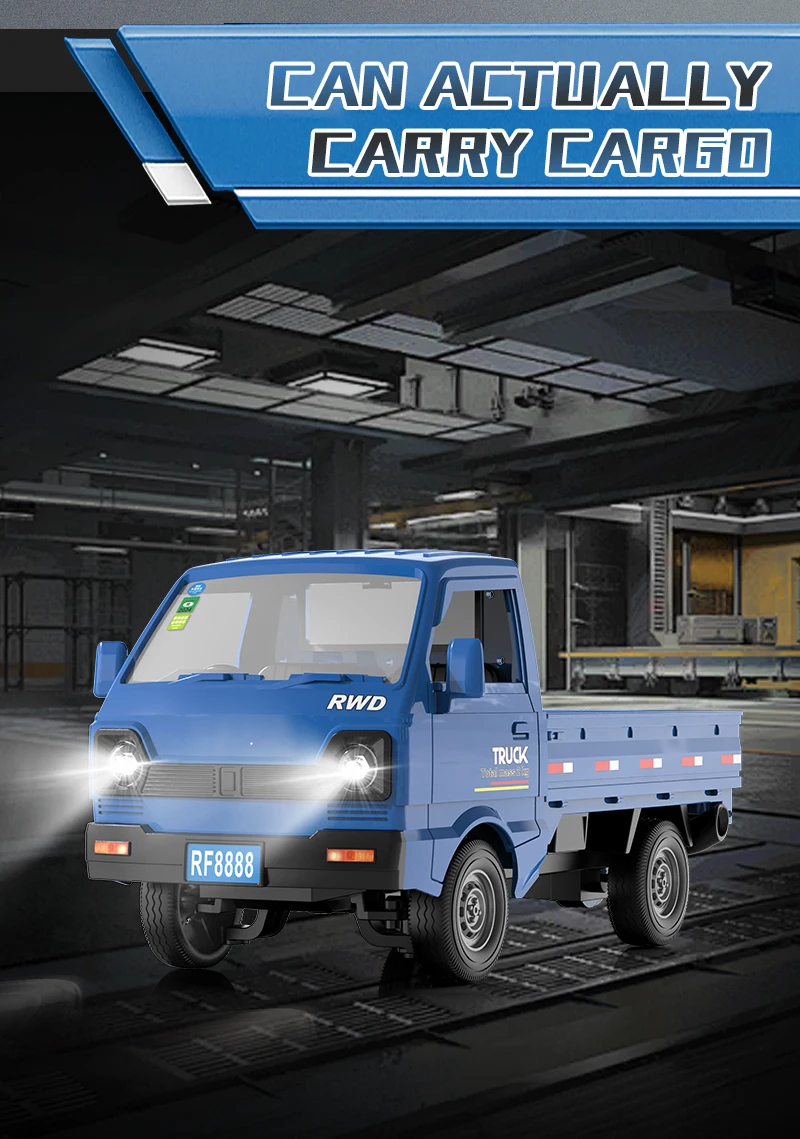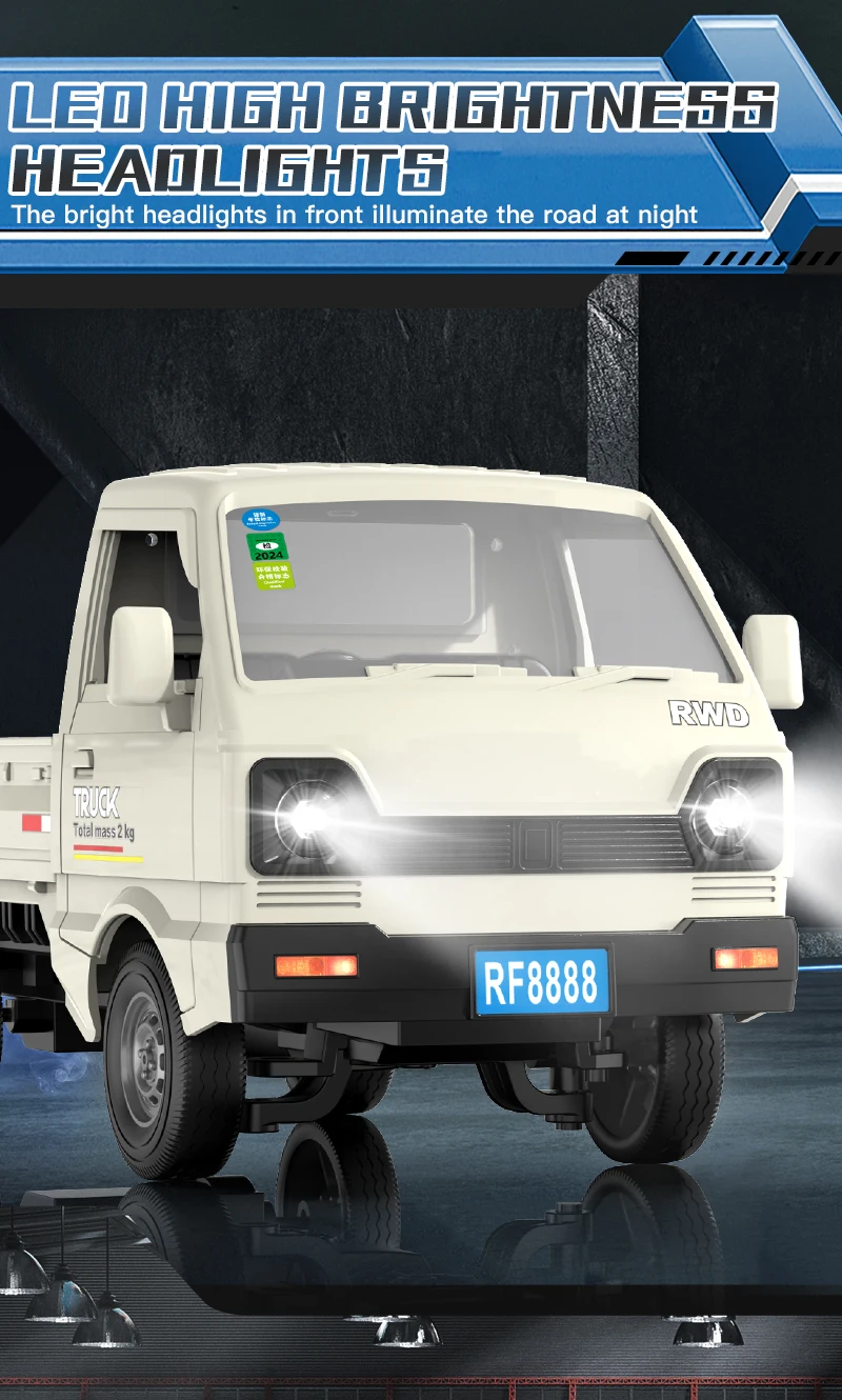 Introducing the KF31 Mini Cargo Truck, the most unique RC vehicle in our collection! Combining the rugged look of a cargo truck with the agility of a drift car, this 1:18 scale model features a built-in water spray exhaust and vibrant LED lights for an unforgettable racing experience.